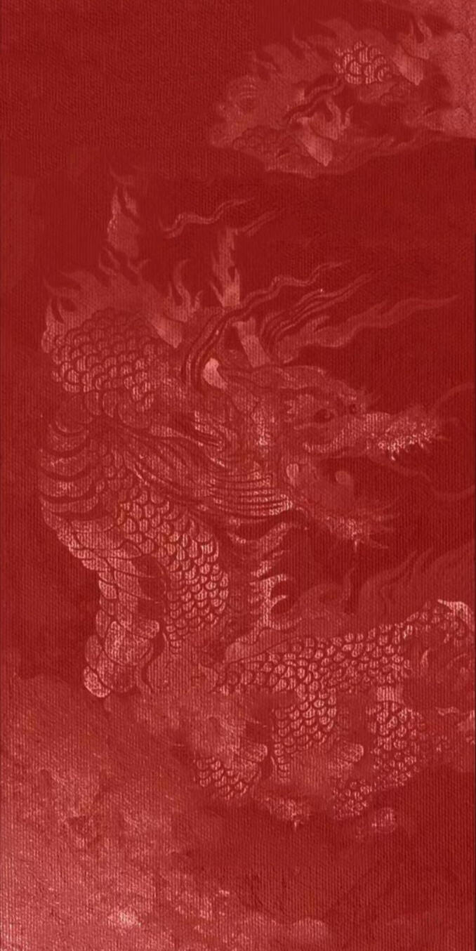 features bright red tattoos across the whole body; matching cheek markings, huadian